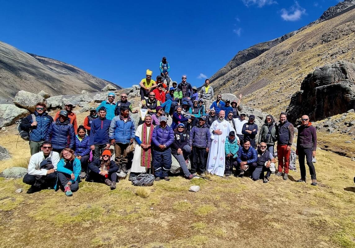 Le due settimane successive, con meteo sempre bello, il gruppo di alpinisti si è dedicato a salire diverse vette della Cordillera Real tra cui lo Jankho Uyo a 5512m e il Cerro Pakukiuta di 5589m: «Per queste due cime dormivamo al campo base a 4800m dove c’erano delle cuoche». Tornati per un giorno di riposo alla missione di padre Topio, il gruppo è poi ripartito per scalare il Pequeño Alpamayo a 5440m, il cui campo base era a 4600m, e la vetta più alta del Chachacomani a 6074m. Per arrivare in cima al Chachacomani due sono stati i campi intermedi in cui gli alpinisti hanno sostato: uno a 4200 e uno a circa 5000m. Per quanto riguarda questa importante cima, Alvise ha portato a casa l’impresa stingendo i denti: «Domenica 18 dovevo partire ma la mattina mi sono svegliato con disturbi gastrointestinali. Sono costretto a salutare con un abbraccio i miei compagni diretti al primo campo base a 4200m» racconta, dicendo che nel corso dei giorni anche altri suoi compagni hanno avuto problemi di salute e hanno dovuto rinunciare. «Resto a letto tutto il giorno, mangio poco o niente con la speranza di raggiungerli il giorno dopo direttamente al campo alto. – continua Alvise, che non voleva perdere l’opportunità di arrivare in cima alla montagna anche a nome della Giovane Montagna di Venezia – Il giorno dopo sto meglio e decido di partire. In cinque ore raggiungo gli altri sette compagni a 5000m». Il giorno successivo, dopo aver fatto quello che i suoi compagni hanno fatto in due, Alvise riparte per arrivare in cima e conquistare il suo quarto 6000: «L’emozione è stata tanta. Mi sono domandato perché ho voluto farlo, se per sfida personale o amore per la montagna. So solo che al ritorno, dopo aver completato in 10 ore il giro insieme ai miei compagni di cordata, ero felice e l’esperienza vissuta è stata più grande del sacrificio fatto. Questo insegna che anche quando si pensa di non averne più si trovano energie nascoste che non pensiamo nemmeno noi di avere». È così che Alvise ha potuto portare con soddisfazione anche su questa cima il gagliardetto della Giovane Montagna di Venezia. «È una bella sensazione, senti che non fai la cima solo per te ma anche per gli amici rimasti a Venezia» spiega Alvise, dicendo che appena rientrati dall’impresa sono stati raggiunti dal gruppo che ha svolto il trekking e hanno partecipato alla messa celebrata da Padre Topio.