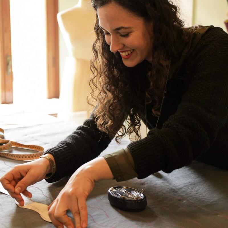 Fosca (classe 1993) ha sempre avuto una propensione artistica, fin da quando da piccola dipingeva dei paesaggi sulle pareti di casa e realizzava le composizioni di abbigliamento per Carnevale. La passione per lasartoria però l’ha scoperta da grande quando, finito il liceo classico, ha preso parte ad un corso di taglio e cucito: «Mi si è aperto un mondo, potevo unire la parte artistica e culturale. Uniti così i tasselli, nel 2012 si è iscritta all’Accademia Made in Italy, importante scuola di moda a Treviso, ottenendo i diplomi in stile, modellismo e sartoria che ha accompagnato con diverse specializzazioni in alta moda e sposa svolte tra Pisa e Londra: «Volevo una formazione a tutto tondo» spiega, dicendo che negli anni ha avuto opportunità che le hanno permesso di crescere velocemente, come il primo stage all’azienda Cavalli. Significativo anche il lavoro come sarta di scena al Teatro La Fenice e, in contemporanea, la partecipazione ad un laboratorio sartoriale di un professore dell’Accademia. Nel 2019 insieme a Luna Pesce e, nei primi tempi con la collaborazione di altre due ragazze, ha dato vita all’atelier, il cui nome si deve proprio al giorno di nascita di Fosca e Luna. «L’Atelier è nato fin da subito con un imprinting da sposa e cerimonia, anche se nel periodo pandemico abbiamo realizzato anche abiti da giorno. L’idea era fin da subito quella di creare un atelier sartoriale dove fosse possibile inserire nell’abbigliamento le arti tradizionali, dando spazio al vetro e al battiloro per abiti ed accessori» continua Fosca, che ora da poco più di un anno è rimasta da sola a gestite l’attività, dopo che Luna ha deciso di intraprendere un’altra strada.