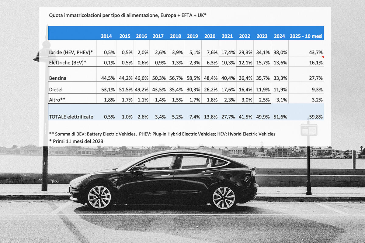 Trend delle immatricolazioni auto per motorizzazione