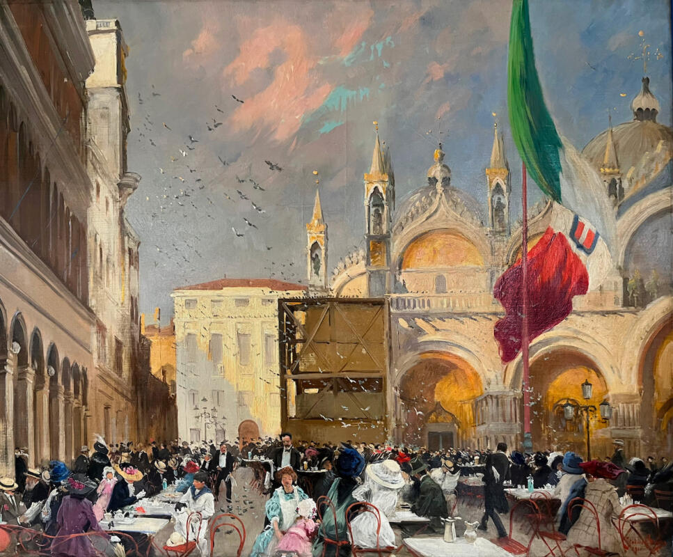 In mostra un video realizzato per l’occasione approfondirà a tutto tondo la figura dell’artista. Ampia fu la sua formazione: prima all’Accademia di Belle Arti di Monaco, dove prese lezioni da Karl Raupp, e poi a Parigi dove rimase per sette anni. Fin da quando era bambino fu attratto dalla città di Venezia, finché riuscì a trasferirvisi nel 1895, dove ottenne subito successo. <A Parigi lo chiamavano il “pittore di Venezia” pensandolo proprio un veneziano> sottolinea Vatin. Dal 1895 partecipa a quasi tutte le Biennali d’Arte, dove tenne la sua prima grande personale nel 1910 con 43 opere.Inoltre a Venezia realizza il suo progetto di restauro dell’Abbazia Vecchia della Misericordia, fortemente danneggiata da un bombardamento durante la guerra. Progetto di una vita dove realizzò il suo atelier e dove ospitò la sua collezione di arte antica, una delle più importanti del tempo in cui figuravano opere di pittori quali Tintoretto, Tiziano e Veronese. In città prese parte attivamente alla vita culturale e fu anche mercante d’arte. A lui si devono in particolare la riscoperta di Magnasco e la valorizzazione di autori quali Arcimboldo e Pordenone.