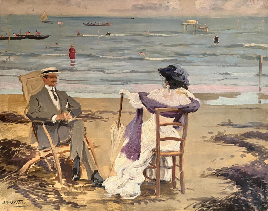 Inedita, viva e pulsante, ma soprattutto popolare, così appare Venezia nelle opere di Brass che in pieno stile da reporter nel documentare attimi di vita, gioiosa e vissuta nella collettività, consegna alla memoria quelle che probabilmente sono le ultime allegre immagini di una città che apparteneva ancora ai veneziani. Le circa 100 opere che saranno esposte nella mostra, promossa dall’Istituto Veneto di Scienze, Lettere ed Arti e dall’editore Lineadacqua, sono fresche visioni della città e di chi la popola, riuscendo a rendere, con immediatezza rappresentativa e un vibrante uso del colore, attimi di vita spensierati come le estati al lido, i burattini a San Polo e le giostre a Sant’Elena. Artista che fu pittore della grande Venezia, gestita da una borghesia che portò avanti una fervida stagione artistica e culturale e che fece nascere la Biennale.