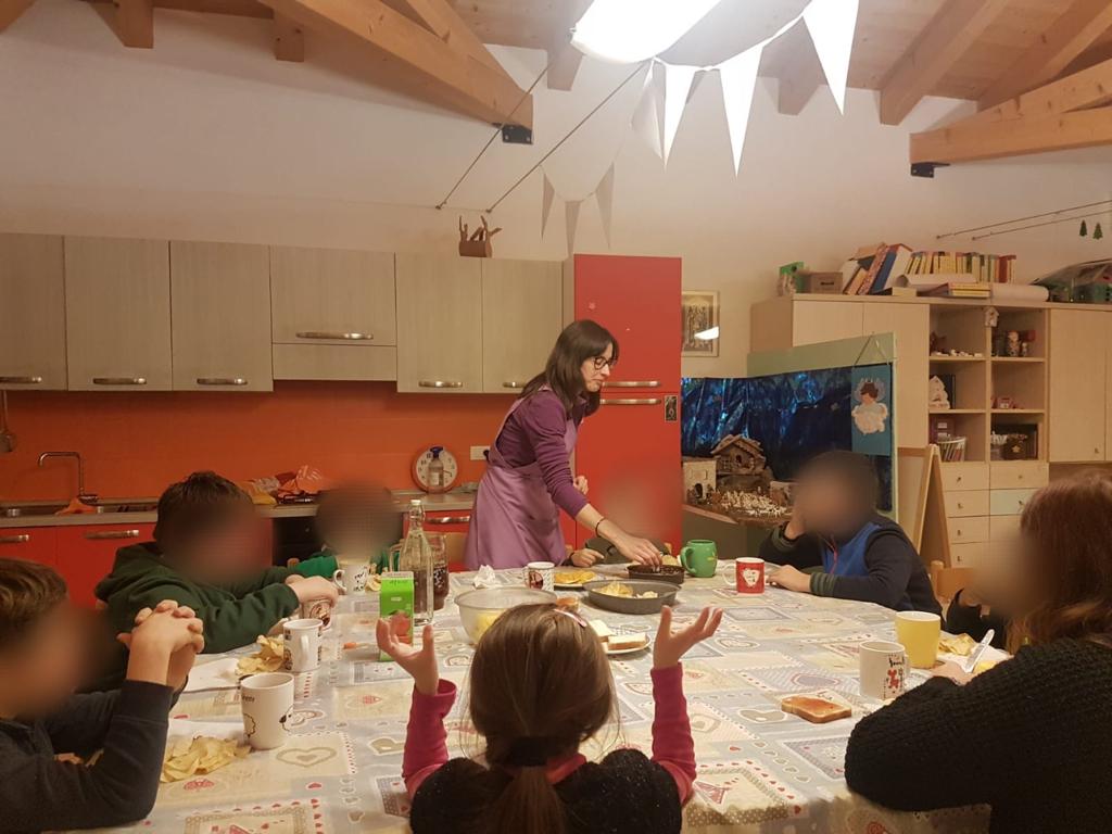 Un momento fondamentale è la merenda dove tutti i bambini vengono riuniti per far comprendere loro il significato di mangiare insieme e condividere. Questo sottolinea l’importanza di offrire spunti ai bambini affinché comprendano le loro azioni e possano scambiare opinioni tra di loro.