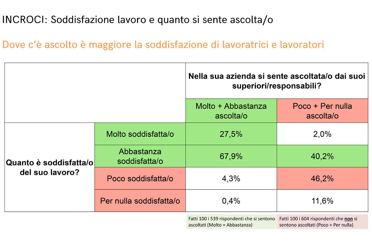 La partecipazione risulta essere un elemento già presente nelle aziende a livello di coinvolgimento attivo per due lavoratori su cinque fra quelli intervistati, se non direttamente, attraverso i propri rappresentanti sindacali. Maggiore soddisfazione sembra essere dedicata al tema dell’ascolto, che però è presente solo per il 40% dei rispondenti. «Il modo in cui si concettualizza il proprio lavoro sta cambiando – spiega Anna Orsini, Presidente della Fondazione Corazzin – si cerca sempre di più un luogo in cui sentirsi valorizzati e dove coltivare il proprio talento, con l’opportunità di partecipare attivamente alla vita di un’impresa».