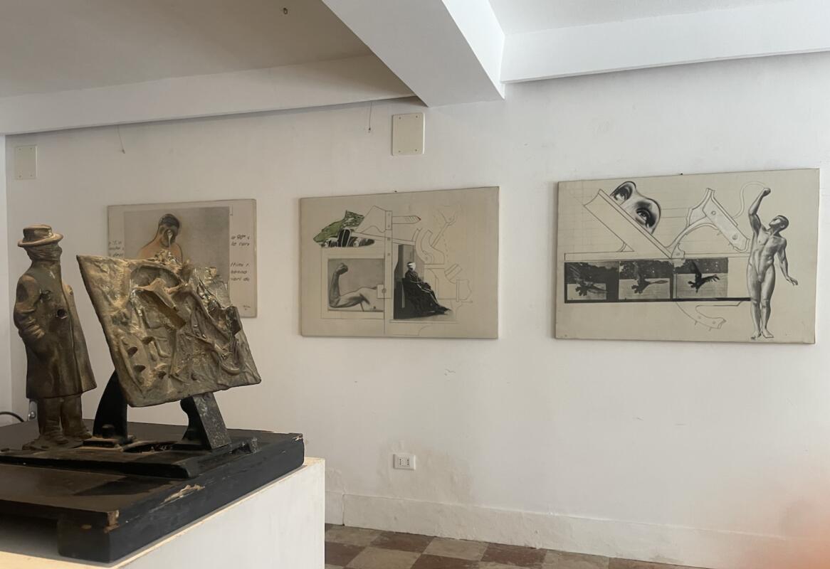 La mostra, organizzata nella sede espositiva del laboratorio di Adriana e Adriano Cincotto, artigiani restauratori dal 1997, ripercorre parte della storia artistica di “Cencio”, come veniva da tutti affettuosamente chiamato in città. Figlio delle avanguardie, la sua era una pittura che negli anni si è rivelata sempre più di stampo espressionista, riuscendo a conciliare astrattismo e realismo. «Un linguaggio tutto personale in cui non manca mai di mettere al centro l’uomo e lo rivaluta attraverso le trasformazioni sociali in atto» spiega il curatore Stefano Cecchetto. Quelle di Eulisse sono opere dalla decisa impronta cromatica, intensa e vibrante, attraverso cui attua una denuncia della crisi identitaria vissuta dall’uomo, in particolare tra gli anni ‘60 e ’70, per via della nascita dei primi calcolatori. «Uomo energico e di grande profondità, Eulisse capì subito che l’uomo stava iniziando a perdere la sua dimensione umana e sarebbe stato fagocitato e assorbito dalla macchina. E questo a metà del secolo inizia a rappresentarlo concretamente nelle sue creazioni pittoriche e nei collage, un aspetto che in mostra attraverso le opere esposte è chiaramente visibile. – continua Cecchetto – In quegli anni trova il suo linguaggio personale e comincia il ciclo di opere “L’uomo macchina”, incentrato proprio sull’ibridazione dell’umano dopo le recenti scoperte tecnologiche. In queste, l’uomo subisce anche trasformazioni fisiche, di una macchina che si fa sempre più spazio prevalendo sui corpi. Resta fondamentale però in Eulisse l’idea della figura umana che vuole riuscire a dominare». Nelle sue opere infatti non manca il recupero dei miti classici, dove i corpi richiamano quelli michelangioleschi, pur inseriti in creazioni che mescolano insieme realtà e mondo onirico, integrandosi insieme grazie anche ai riferimenti architettonici come anelli di congiunzione tra i due mondi.