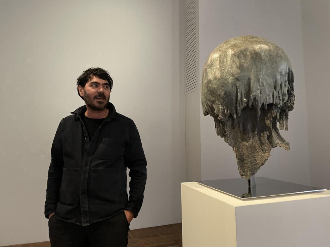 La piccola ma significativa esposizione propone un viaggio nella “lingua morta”, ma che in realtà più viva non si può, attraverso le opere più significative di Andreotta Calò realizzate in oltre vent’anni di lavoro, tra cui le celebri “Clessidre”, le “Pinne Nobilis”, i “Carotaggi”, e appunto le “Meduse”, soggetto molto caro all’artista. Oltre all’opera posta su piedistallo della Medusa messa in inedito dialogo con la Testa di Medusa di Martini, a far parte della mostra, esposta nello scalone del Museo ad accogliere i visitatori del primo piano è la grande Medusa entrata nella collezione civica di Ca’ Pesaro grazie al Piano per l’Arte Contemporanea del 2021, promosso dalla Direzione Generale Creatività Contemporanea del Ministero della Cultura. Nella prima sala dell’esposizione colpisce anche appeso al muro “Icarus”, un ramo in argento realizzato con microfusione diretta e bozzoli naturali pronti a schiudersi per davvero. «Tra me e Martini è trascorso un tempo in cui sono accaduti diversi sconvolgimenti in quella che è la grammatica, il lessico e la storia dell’arte che ha aperto anche nuove possibilità. – spiega Andreotta Calò – Questa mostra cerca di fare il punto a livello personale rispetto alla ricerca e al luogo, che deve continuare ad essere un riferimento per quanto riguarda la scultura. Qui in museo sono conservate collezioni incredibili. La mostra non si prefigge di colmare il gap temporale ma di riattivare un discorso su questa sfera della rappresentazione dell’arte» L’esposizione, più che un’antologica, è lo step di un percorso durato 10 anni: «La prima mostra che riprendeva lo scritto di Martini la feci nel 2014 in Olanda ad Amsterdam. Lì esposi per la prima volta le meduse, i carotaggi e la forma della conchiglia. Poi a Londra e Parigi feci altre edizioni sviluppando questi temi. Alcune forme sono state presentate in queste mostre in una loro lenta metamorfosi e sviluppo». L’opera della clessidra è quella che ha Calò sviluppato di più: «È un lavoro che ho iniziato a fare quando ero studente in Accademia, e la cui forma si è evoluta in vent’anni. Prima la realizzavo in legno, poi quando mi sono trasferito in Olanda, grazie ad una borsa di studio, ho potuto replicarla in bronzo a cera persa, materiale incorruttibile da cui è nata la forma palindroma. – e continua il celebre artista – Le clessidre sono lavoro concettuali oltre che formali, racchiudono il concetto che governa la realizzazione stessa dell’opera» Parla anche dell’esperienza alla Biennale nel 2017: «Un progetto faticoso che non so se ripeterei, ma d’altronde anche questo momento, questa mostra, è irripetibile. Da quell’esperienza cerco di mantenere la tensione provata, che porto in ogni mostra che faccio».