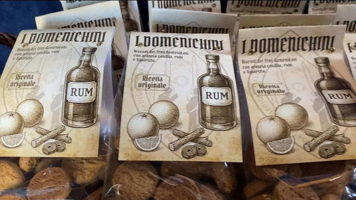 Il primo degli ingredienti utilizzati nella ricetta è l’arancia candita, e non è una scelta casuale. La sua presenza rimanda a un’antica leggenda che racconta la storia di San Domenico, fondatore dell’Ordine, e di come abbia portato dalla Spagna un albero di arance amare, piantandolo nel chiostro che oggi conosciamo come il Giardino degli Aranci. Secoli dopo, Santa Caterina da Siena, figura chiave della spiritualità domenicana, volle dimostrare a Papa Urbano VI che anche ciò che nasce amaro può diventare dolce, candì quelle arance e gliele offrì come simbolo di riconciliazione e trasformazione. Un gesto semplice, ma carico di significato spirituale e umano. Il secondo ingrediente che compone i Domenichini è la liquirizia, una radice che affonda le sueorigini nel mondo della medicina naturale. Utilizzata per secoli nelle antiche farmacie monastiche, la liquirizia era apprezzata per le sue proprietà benefiche, in particolare per lenire la gola, facilitare la digestione e rafforzare il corpo. Nel biscotto, il gusto della liquirizia non è solo una scelta aromatica, ma rappresenta la memoria di un sapere artigianale e spirituale, che univa corpo e spirito in un’unica visione armonica del benessere. Il terzo ingrediente, forse il più sorprendente, è il rum. La sua presenza nei biscotti è un omaggio a una figura emblematica dell’Ordine: Jean-Baptiste Labat, frate domenicano, missionario, esploratore e anche produttore di rum.Vissuto tra XVII e XVIII secolo, Padre Labat fu inviato nelle Antille francesi dove, oltre alla sua attività pastorale, si distinse per le sue doti di osservazione e intraprendenza. A lui si deve il perfezionamento delle tecniche di distillazione del rum, tanto che ancora oggi alcune etichette portano il suo nome. L’inserimento del rum nel biscotto è anche una citazione storica che richiama l’anima viaggiatrice e curiosa dell’Ordine domenicano, capace di intrecciare fede, conoscenza e aiuto.