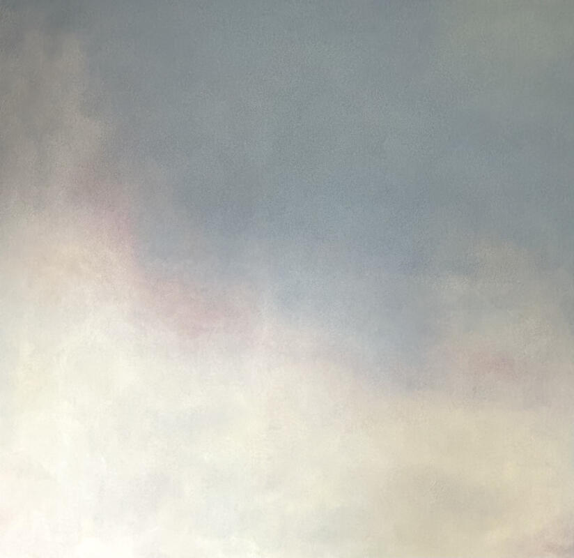 Guardando i suoi dipinti pare di vedere quei pezzi di cielo velati nel mezzo di una calle veneziana, non a caso la curatrice ha deciso di esporre l’opera più grande a soffitto, invitando le persone ad osservarla da distese, accompagnate dalla musica Gymnopédies di Erik Satie. L’artista per realizzare le sue opere trae ispirazione dalle delicate realizzazioni di Tiepolo, maestro nel realizzare cieli chiari e ariosi: «Oggi affrontiamo quotidianamente la minaccia di una catastrofe climatica imminente, e questo mi porta a interrogarmi. – dice l’artista – Questa esplorazione è la forza trainante del mio lavoro. Seguendo le orme tracciate dai grandi maestri, osservo con attenzione ogni tramonto, ogni nuvola e ogni orizzonte alla ricerca di tracce di colore e materia autentici. Il mio obiettivo è trovare quella luce che ogni giorno ridona vita alla natura sulla mia tela, infondendo significato alla mia esistenza».