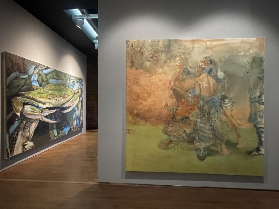L’esposizione, attraverso opere ad olio, acrilico, acquerello, tempera e grafite, propone molteplici filoni che non si possono etichettare in modo definito. Tante sono poi le opere di grandi formati realizzate grazie ai grandi spazi di Antares che permettono l’attività prima laboratoriale e poi espositiva, e di cui ora al Magazzino del Sale sono accolti i lavori più rappresentativi: «Le opere sfociano in verticalità, orizzontalità e anche nella terza dimensione, non manca infatti chi si è cimentato nel realizzare piccole sculture dipinte» dice Scavezzon. Tra i lavori compaiono sia scenari fantastici che legati alla contemporaneità, con riferimento sociopolitici e alla crisi ecologica: «I temi non sono diretti ma sempre celati attraverso l’immagine, che deve dare più sfaccettature per non essere mai banale» continua Scavezzon. A fianco alle opere degli studenti quelle di artisti, ex studenti dell’Atelier F, ormai affermati come Thomas Braida, ora docente allo Iuav, che ha realizzato un enorme granchio blu, o l’artista cinese Jingge Dong, che ha realizzato un polittico con significati legati alla politica attuata dalla Cina. «Sono figure importanti per noi studenti, esempio di ambizione e supporto» dicono i giovani artisti.