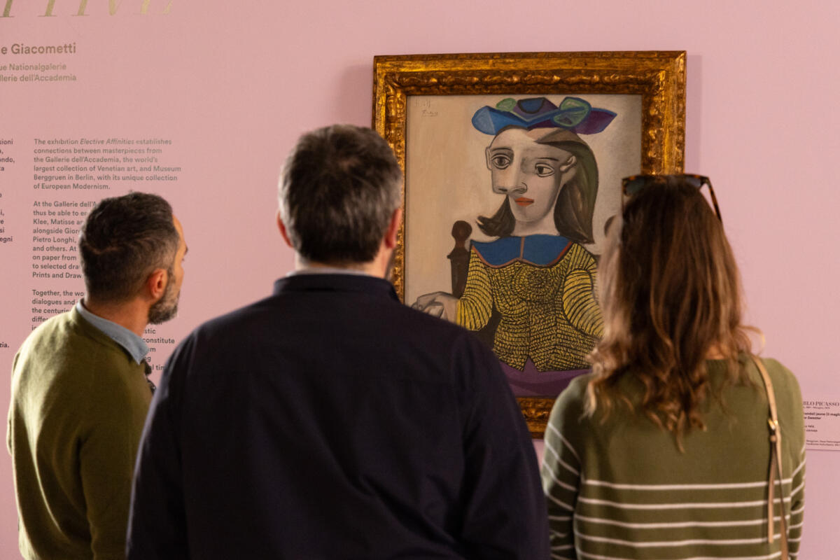 Un dialogo serrato per cercare analogie e differenze. È quanto propone la mostra “Affinità elettive. Picasso, Matisse, Klee e Giacometti”, che si divide tra gli spazi delle Gallerie dell’Accademia di Venezia e la Casa dei Tre Oci alla Giudecca, nuova sede del Berggruen Institute Europe, riaperta per la prima volta al pubblico dopo il restauro. Fino al 23 giugno una selezione di quadri modernisti provenienti dal Museum Berggruen – Neue Nationalgalerie di Berlino sono per la prima volta in Italia in dialogo con i capolavori della grande pittura veneta delle Gallerie dell’Accademia. Sono oltre 40 le opere di Picasso, Matisse, Klee, Giacometti e Cézanne poste a confronto con i capolavori di Giorgione, Sebastiano Ricci, Pietro Longhi, Giambattista Tiepolo e Canova. L’esposizione è a cura di Giulio Manieri Elia e Michele Tavola, rispettivamente direttore e curatore delle Gallerie dell’Accademia, e di Gabriel Montua e Veronika Rudorfer, direttore e curatrice del Museum Berggruen.