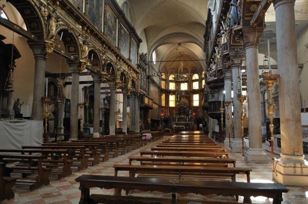Nel coro dei frati si possono osservare alcuni episodi tratti dalla vita di San Sebastiano, mentre nelle portelle d’organo e nel parapetto troviamo rappresentate la Presentazione di Gesù al Tempio, la Piscina Probatica e la Natività. Nell’ultimo intervento, risalente al 1565 – 1570, il Veronese realizzò la grande pala d’altare con la madonna in gloria con San Sebastiano e altri santi e due teleri laterali al presbiterio raffiguranti i Santi Marco e Marcellino condotti al martirio e il Martirio di San Sebastiano.