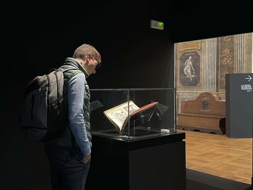 Uno degli aspetti più sorprendenti della Bibbia Istoriata padovana è il suo dialogo serrato con la Padova trecentesca. I miniatori che lavorarono al manoscritto si ispirarono ai grandi cicli di affreschi realizzati in città sotto i Carraresi, attingendo a un repertorio visivo vastissimo e riconoscibile da chi viveva a Padova. La città intera, una vera urbs picta, si riflette nelle pagine del codice. Numerosissime sono le citazioni da Giusto de’ Menabuoi, Altichiero da Zevio e Giotto, come i paesaggi con monti e alberi triangolari. Al Maestro di Ruth si deve invece il realismo domestico con ambienti arredati di sedie, camini e tavole imbandite, paragonabile agli affreschi di Jacopo da Verona nell’Oratorio di San Michele. Non destinata alla liturgia, la Bibbia Istoriata fu probabilmente pensata per la lettura privata di un’élite ristretta: un libro da contemplare, capace di avvicinare il fruitore alla storia sacra attraverso immagini ambientate nella vita quotidiana. La lingua volgare e le scene ambientate nel presente erano strumenti potenti per suscitare immedesimazione, creando un ponte tra il popolo biblico e la società padovana del Trecento. Molti sono gli interrogativi circa l’origine del libro sacro. Gli studiosi hanno ipotizzato una committenza carrarese, forse legata a Francesco Novello da Carrara, ultimo signore della città, o al patrizio veneziano Giacomo Gradenigo, uomo di vasta cultura e vicino agli ambienti padovani. In ogni caso, la realizzazione del manoscritto, che richiese un notevole investimento economico e intellettuale, voleva affermare un’identità culturale forte e riconoscibile.