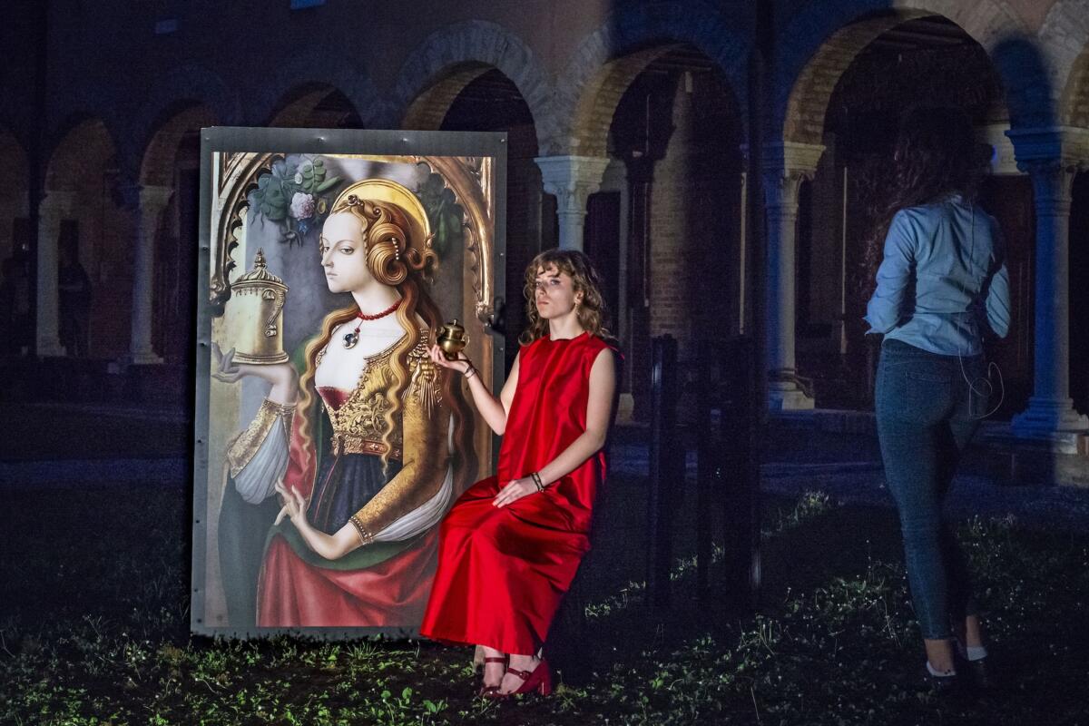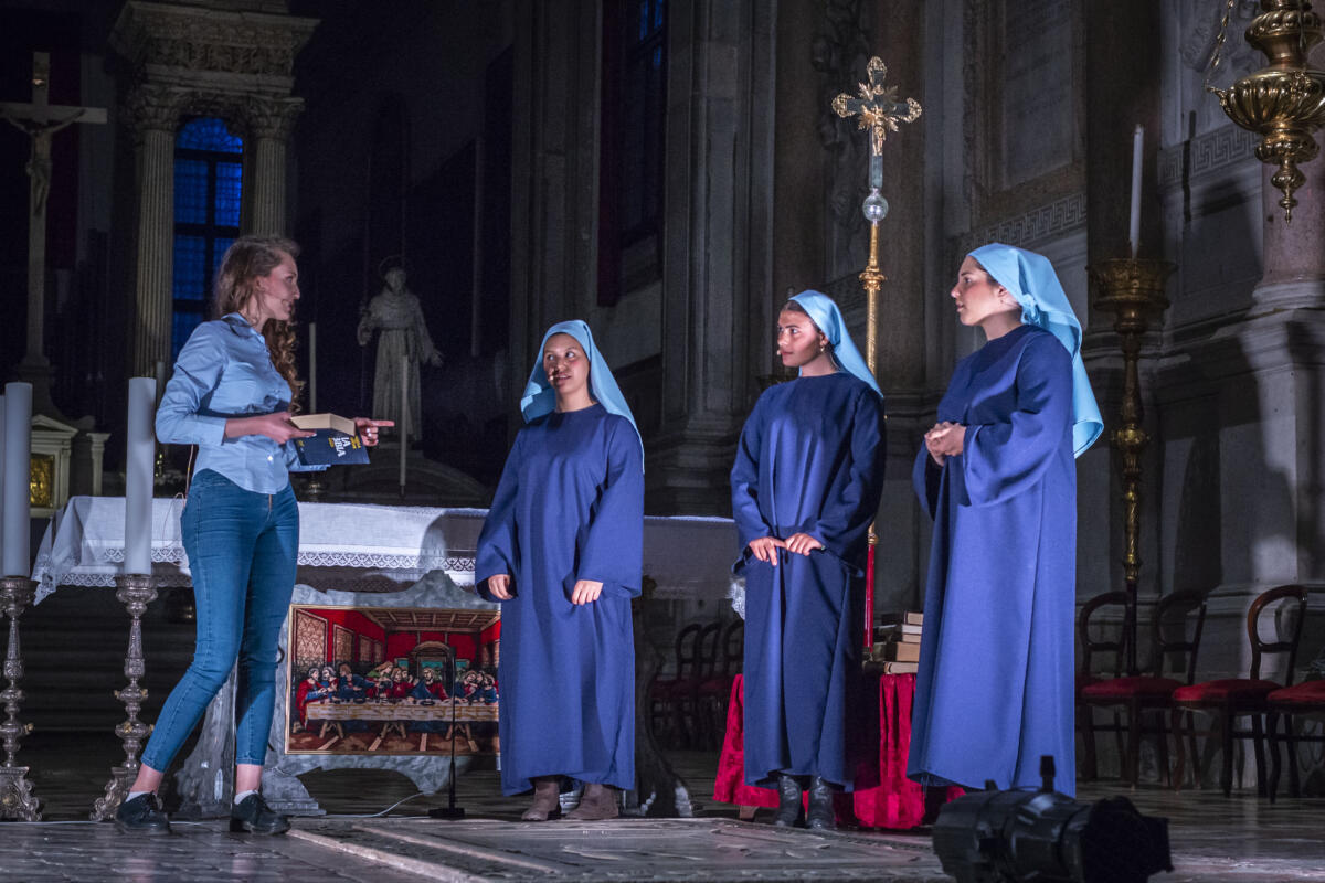 La scelta di Maria Maddalena come figura centrale della serata nasce da una duplice motivazione. Da un lato la sua storia, affascinante e complessa, la rende una delle figure femminili più potenti e sfaccettate della tradizione cristiana. Dall’altro, c’è stata la volontà della Pastorale Universitaria di creare un legame con la Domus Civica, la Casa della Studente, realtà interamente al femminile. «Fin da subito c’è stato un sì unanime nel voler approfondire questa figura così speciale – ha raccontato fra Adriano Cavallo, tra gli organizzatori dell’evento – proprio perché si presta naturalmente al dialogo con la comunità». L’evento, che prosegue una tradizione ventennale, ha visto negli ultimi anni una partecipazione crescente di studenti e studentesse universitarie che, grazie a queste proposte culturali, riescono a riscoprire luoghi poco conosciuti della città. Un’occasione per la Pastorale di trasformare un’esperienza di riflessione in un’opportunità per i giovani di entrare in contatto con le bellezze più nascoste e autentiche di Venezia. Le forme artistiche che hanno animato la serata sono state molteplici: teatro, pittura, danza, scultura e moda, che si sono intrecciate in un’unica direzione espressiva, quella del dialogo profondo tra interiorità ed esteriorità.
