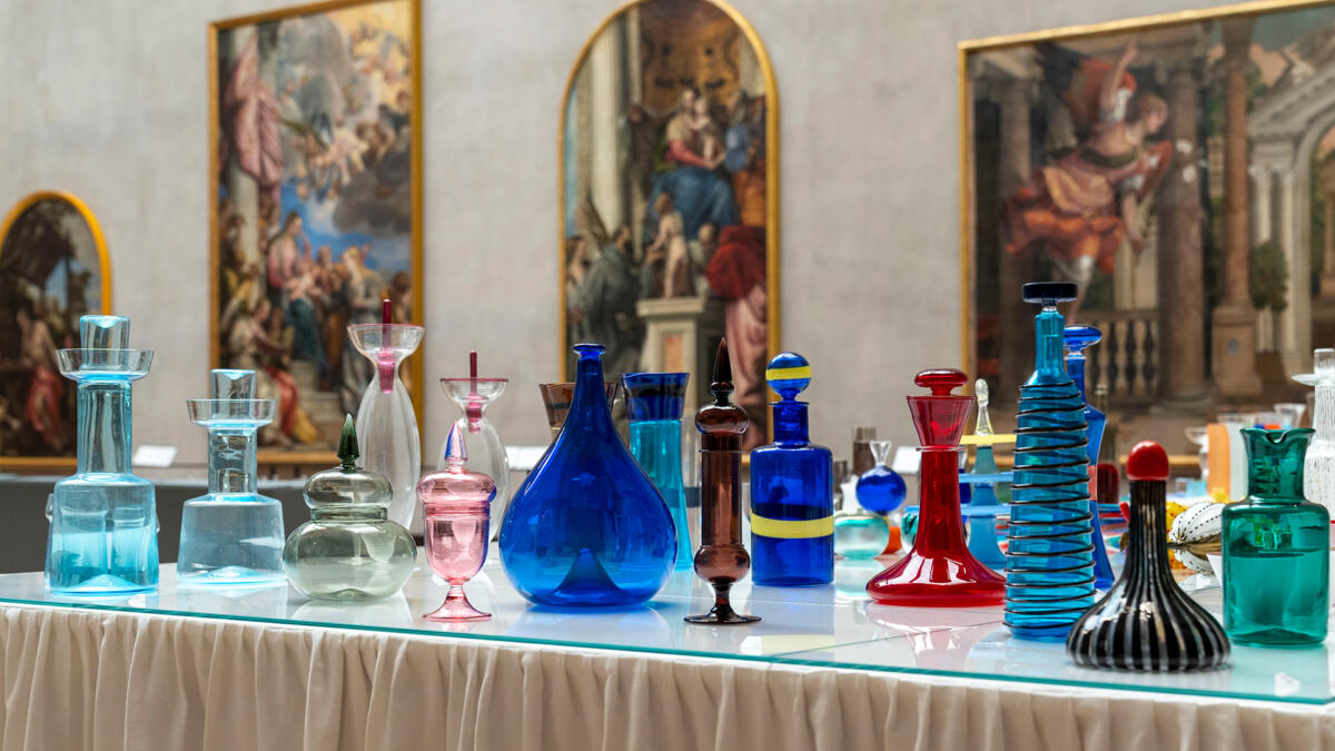 Una tavola maestosa sulla quale sono esposti più di 200 manufatti in vetro per la tavola realizzati a Murano nel corso di circa cento anni, provenienti sia da collezioni pubbliche che private. È “Convito di vetro”, l’installazione site specific allestita fino al 3 novembre alle Gallerie dell’Accademia di Venezia che, in occasione della Venice Glass Week, hanno deciso di aprire di nuovo le porte al vetro muranese. La mostra è realizzata in collaborazione con Pentagram Stiftung e curata da Sung Moon Cho, storica dell’arte specializzata in servizi da tavola del ‘900.