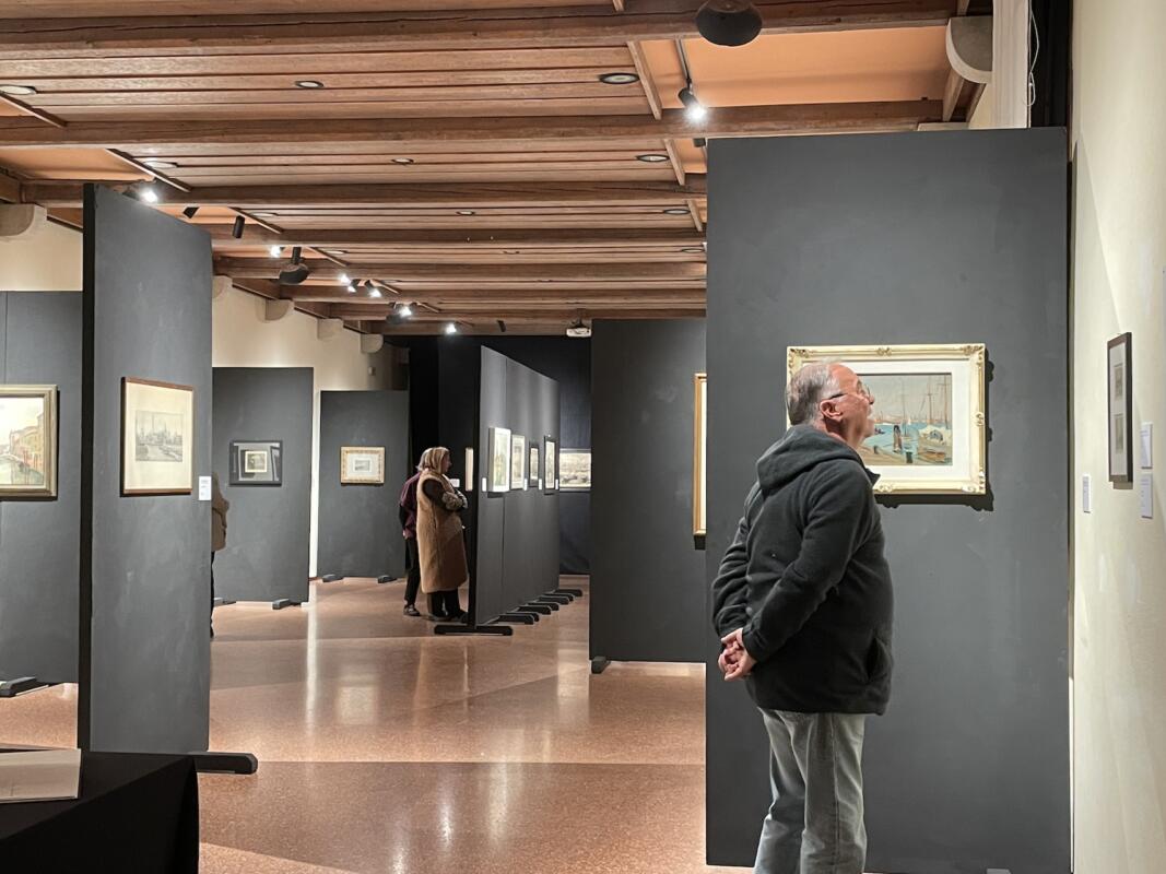 La mostra delinea così il ritratto di un artista attento che si rifà con precisone alla Venezia vedutistica ma anche popolare, seguendo l’influsso dell‘800, con dettagli impressionistici riscontrabili nelle persone rese in modo macchiettistico e vibrante, sia nelle incisioni ma anche nei dipinti, che anzi rivelano più libertà espressiva, come nell’opera “San Trovaso” del ’40. «In mostra ho voluto esporre anche alcune opere pittoriche perché, nonostante Giuliani si esprimesse principalmente attraverso l’incisione e dipingesse sporadicamente, ci sono esempi significativi che nelle precedenti mostre a lui dedicate non erano mai emersi» spiega ancora Dolfin, dicendo che nei dipinti l’artista predilige i piccoli formati, a parte qualche eccezione. Difatti, rappresenta il luogo del cuore delle Zattere sia attraverso l’incisone sia mediante piccole tavole, molto rare tra l’altro, realizzate con tocchi di pennello rapidi che delineano il paesaggio. Tra queste spicca un’opera trovata nel mercato antiquario romano proprio pochi giorni prima dell’apertura della mostra.