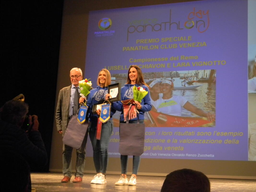 Il Panathlon ha avuto il piacere di premiare anche Antonio Sambo, ex atleta di rugby, come vincitore del premio “Mario Viali, una vita per lo sport” e Luisella Schiavon e Lara Vignotto, madre e figlia che praticano voga alla veneta a Venezia, come vincitrici del “Premio speciale Panathlon Club Venezia”. Proprio Luisella Schiavon durante la serata ho sollevato il problema del moto ondoso, un tema importante per quanto riguarda lo sport in barca che è peculiare della nostra laguna. Negli anni questo è aumentato sempre di più e, a causa di alcune carenze normative, per gli atleti è diventato sempre più complicato e pericoloso allenarsi in acqua.