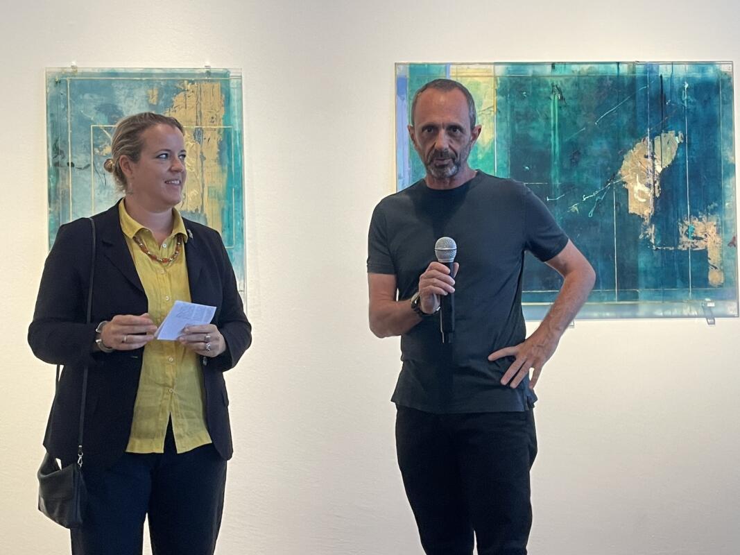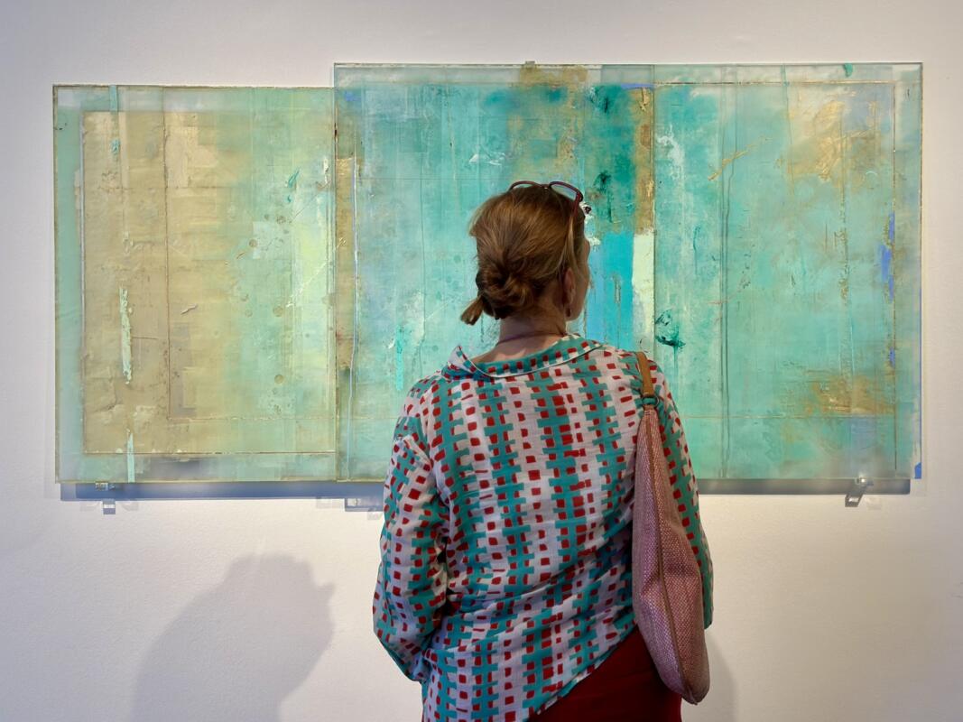 Una pittura che suggerisce ed evoca, richiamando le trasparenze e i riflessi dell’acqua. Quella di Antonello Viola è un’indagine pittorica che si caratterizza in un arcipelago intimo e personale che prende forma traastrazione lirica e tensione spirituale. “L’oro della laguna” è la mostra personale dell’artista astratto romano allestita fino al 28 settembre nelle sale Dom Pérignon della Galleria Internazionale d’Arte Moderna di Ca’ Pesaro a Venezia, a cura della direttrice Elisabetta Barisoni. L’affermato artista, nato a Roma nel 1966, allievo di Enzo Brunori, ha studiato Pittura all’Accademia di Belle Arti e trascorso un lungo periodo di studio in Spagna. Attualmente insegna Scienza e Tecnica del colore all’Accademia di Belle Arti di Roma. Viola ha fatto della stratificazione e della sottrazione il proprio metodo distintivo. Le opere esposte in mostra, lastre in vetro disposte su più livelli e dipinte fronte e retro, si ispirano a terre insulari e all’intera laguna veneziana pensata come ad un arcipelago diffuso che compone una geografia astratta e interiore. Le superfici diventano luoghi sospesi e silenziosi, capaci di trattenere e restituire luce, tempo e memorie. «A volte la luce passa attraverso le parti in vetro, restituendo un’aurea di colori e sensibilità» sottolinea Viola. La mostra a Ca’ Pesaro trae ispirazione diretta dalla città sull’acqua, come si percepisce nelle opere dai toni turchese, azzurro e blu e dai tocchi d’oro che si ispirano ai ricordi della Giudecca e Santo spirito, dove il segno dorato suggerisce una Venezia mutevole, stratificata e in costante trasformazione.