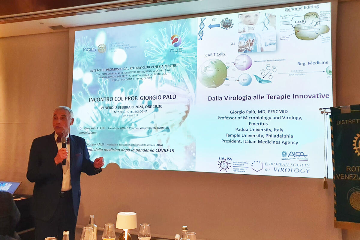Ospite di un Interclub fra vari Rotary Club della Città Metropolitana di Venezia, presso la sede di ritrovo del Venezia Mestre, il celebre virologo partendo da una panoramica sui virus ha affrontato il tema delle terapie innovative: «La medicina fa grandi progressi e avanza in modo rapidissimo – ha spiegato il medico – ma in situazioni di emergenza come le pandemie, le scelte strategiche dovrebbero essere centralizzate e in mano a chi governa la salute e non sparse come abbiamo visto fra ogni Paese in Unione Europea. Se vogliamo dimostrare di avere imparato qualcosa da questa esperienza sarà necessario strutturare unità di preparazione a future minacce, con board di esperti di vari settori, perché se la comunicazione deve essere centralizzata, le decisioni devono nascere dal confronto tra discipline diverse e vari punti di vista».