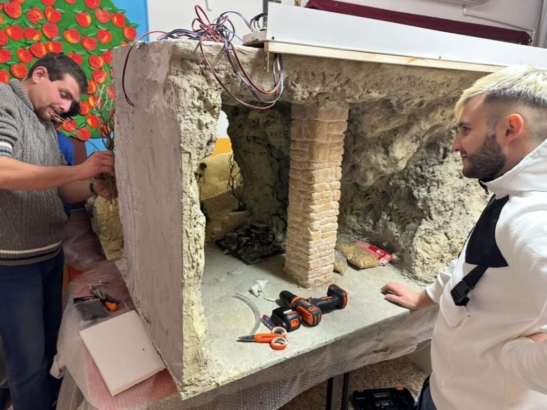 «Abbiamo iniziato a settembre, coinvolgendo sin da subito il gruppo giovani della parrocchia. Una ventina di ragazzi ha contribuito alla fase iniziale, occupandosi del trasporto dei vari pezzi del presepe. Successivamente, il lavoro è proseguito con un gruppo più ristretto di tre giovani, tra cui Gabriele Griffoni, che quest’anno è diventato coautore del presepe», spiega Mauceri.