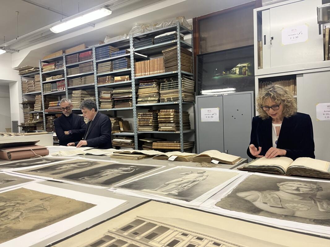 Tra gli scaffali dell’Archivio Storico dell’Accademia s’intrecciano secoli di storia. Fondato nel 1750, l’istituto artistico ha documentato secoli di formazione in registri, manoscritti, opere nate da concorsi di Figura e Architettura. Nei corridoi riecheggiano i nomi di celebri allievi: Giovanni Battista Tiepolo, Giovanni Antonio Canal, Antonio Canova, Francesco Hayez, Amedeo Modigliani, Umberto Boccioni, Emilio Vedova. Il Fondo Storico conserva i disegni degli allievi realizzati tra il 1763 e il 1857, accanto a capolavori di maestri italiani dal XVI al XIX secolo, provenienti in gran parte dalla collezione di Giuseppe Bossi. La Biblioteca Antica custodisce oltre 4.000 volumi pubblicati tra la fine del XV secolo e il 1830, tra cui figurano edizioni rare come la “Hypnerotomachia Poliphili” e la “Divina Proportione”. A completare il patrimonio, una raccolta di stampe antiche con opere di Andrea Mantegna, Albrecht Dürer, Giambattista Piranesi, oltre ai 20.000 effigi della Pinacoteca Corneliana. La Quadreria ospita, tra gli altri tesori, l’autoritratto di Francesco Hayez del 1862, mentre il fondo dell’Associazione Incisori Veneti raccoglie oltre 4.500 incisioni realizzate da 350 artisti.