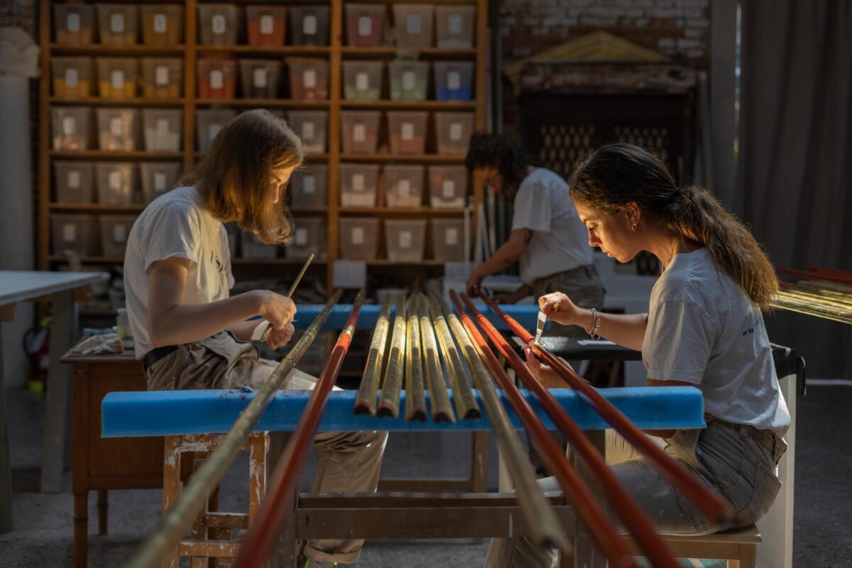La scelta di aprire nuove sedi oltre a quella principale in Fondamenta dello squero, vicino al Ponte dei Pugni, è dovuta ad una questione pratica: «Non è stata necessaria solo per la mancanza di spazi nella nostra sede per l’utilizzo di alcune macchine particolari, ma soprattutto perché le varie tecniche non andassero ad interferire tra di loro. – spiega ancora Jaccarino – Il lavoro del fabbro, per esempio, è incompatibile a livello di sicurezza e pulizia con quello dello stuccatore. La polvere del ferro non può mescolarsi allo stucco e viceversa». Ad oggi infatti Unisve è alla ricerca di altri laboratori per dare spazio alle diverse tecniche dei vari artigiani. «Nel nostro laboratorio abbiamo persone che lavorano su materiali come il marmo e il legno, ed essendo in tanti diventa incompatibile svolgere le varie attività nel laboratorio della sede. Ora cerchiamo soprattutto un ulteriore spazio per aprire una falegnameria» continua Jaccarino. Quella dell’officina diventerà la prima vera sede distaccata di Unisve, che ha in sé tutte le caratteriste che un tempo avevano le botteghe artigiane: «Negli ultimi anni, da prima del Covid, Unisve ha iniziato a diventare centro di raccolta per tanti artigiani che lavoravano da soli e, vedendo la nostra realtà, hanno deciso di fare il passo e di diventare nostri dipendenti, conservando la loro autonomia ma avendo però alle spalle un gruppo in cui nel momento del bisogno possano trovare supporto. – e specifica – Negli ultimi anni Unisve ha attirato una serie di altri artigiani di mezza età quali stuccatori, falegnami, indoratori, pittori e, appunto, il fabbro Marzocchi. Il lavoro non manca ma a volte c’è bisogno di essere in più persone per fare determinate commissioni, oppure per far fronte in caso di malattia a consegne promesse. Avendo un gruppo alle spalle cambia tutto».