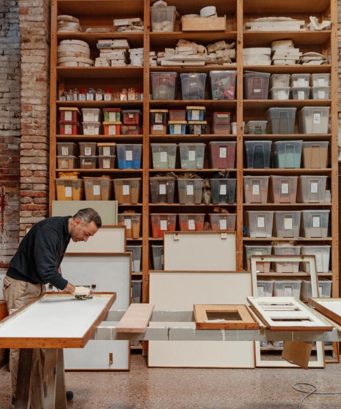 Ad oggi i dipendenti Unisve ammontano ad una 50ina, e attualmente sono impegnati in interventi come quelli avviati da due anni agli interni del Palazzo della Ca’ d’Oro grazie al Comitato Venetian Heritage. Dopo aver concluso il primo piano, ora i lavori continueranno per circa un anno al secondo. Inoltre sono attivi anche cantieri nella Chiesa delle Zitelle che, parte del complesso alberghiero di lusso, verrà interamente restaurata, e in quella di San Pantalon dove, grazie al Comitato americano Save Venice, in circa 5 mesi nella Cappella di Sant’Anna verranno restaurati pavimento, marmi, sculture e bassorilievi con la storia della santa che risentivano del problema della risalita dell’umidità e dei sali. «Quando nel 2001 Unisve è nata come cooperativa eravamo in 10 persone. Il grosso salto in avanti è avvenuto negli ultimi 5 anni, quando da 25 dipendenti siamo passati al doppio» conclude Jaccarino, spiegando che l’azienda fin dall’inizio è nata con l’intento di mantenere vive e salvare le tradizioni veneziane artigianali quando queste non erano considerate. Fin da subito Unisve ha preferito realizzare finiture in marmorino piuttosto che con il premiscelato, più veloce ed economico, prediligendo inoltre gli intonaci alla realizzazione delle pareti in cartongesso. «È sempre stata la nostra poetica e visione che ancora adesso ci caratterizza e per cui siamo conosciuti. Oggi proprio per questa nostra peculiarità facciamo anche tutta una serie di prodotti nuovi e oggetti d’arte e d’arredo, disegnati da designer contemporanei e fatti con tecniche tradizionali veneziane, che sono molto richiesti. Una scelta che ora, dopo 25 anni, è risultata vincente proprio perché sappiamo fare le cose ancora come una volta».