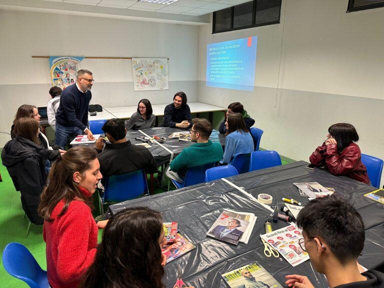 L’incontro conclusivo, guidato da Massimiliano Ferragina, docente presso il Liceo Artistico “Via di Ripetta” di Roma, ha offerto un’esperienza pratica di espressione artistica: dopo una riflessione sul tema, i ragazzi hanno realizzato un lavoro di collage, rappresentando con immagini e colori le proprie storie ed i loro sentimenti in relazione alla tristezza.